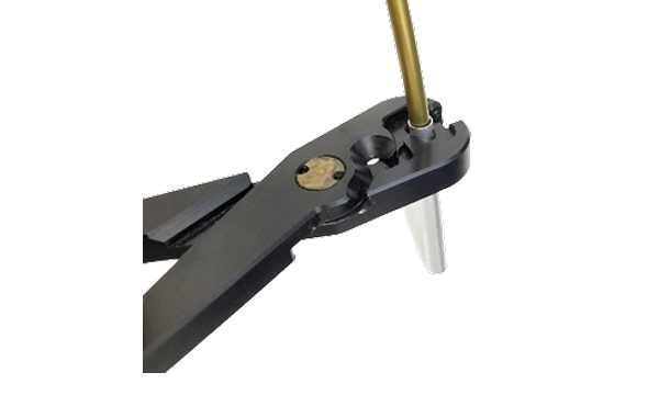Bronz-pirinç karışımı, kıvılcım çıkarmayan pens; kapsül/fitil montajı, fitil kesme ve kapsül yuvası açmada durma noktası ile emniyet sağlar.
